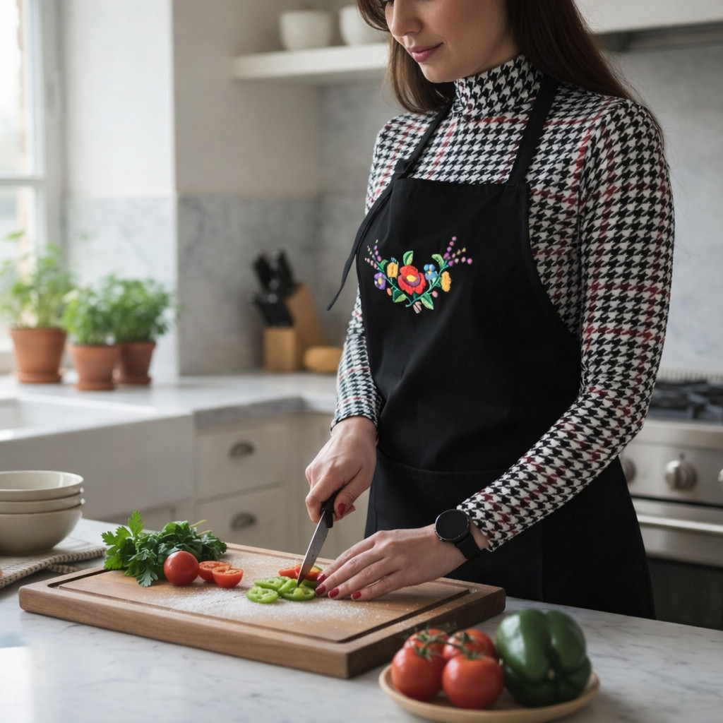 Hozd el a magyar hagyományok szépségét a konyhádba! Ez a prémium minőségű kötény gyönyörű kalocsai hímzéssel díszítve tökéletesen ötvözi a stílust és a funkcionalitást. Kiváló választás főzéshez, sütéshez vagy akár ajándéknak is. Strapabíró anyaga biztosítja a kényelmes viseletet, míg a hagyományos motívumok egyedi megjelenést kölcsönöznek.